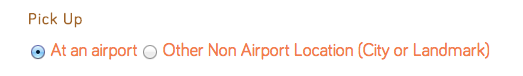 1. Select whether you will pick up your rental car at an airport or a non-airport location.